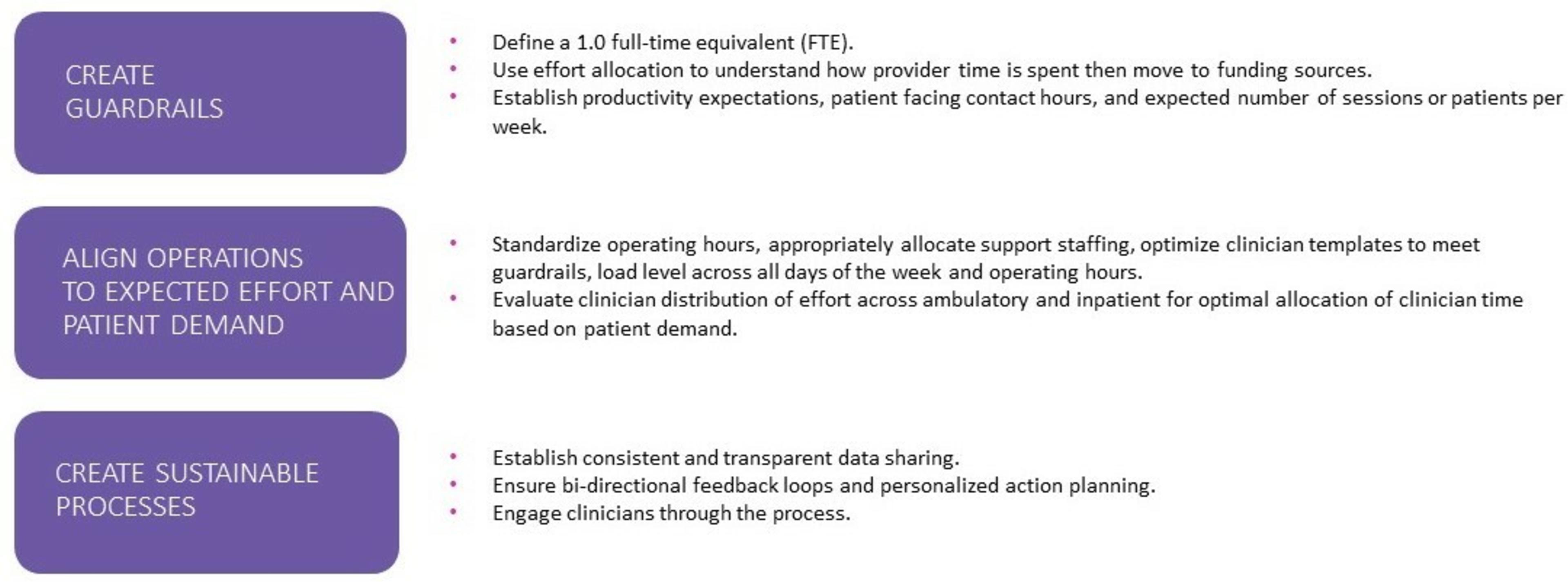 Establishing clinician standards and expectations across the ambulatory enterprise – underpinned by transparent data sharing – will help to increase efficiency, reduce provider variation of care and drive revenue enhancement to offset rising costs. We recommend a three-pronged approach that includes creating guardrails, aligning operations to expected effort and patient demand and creating sustainable processes.