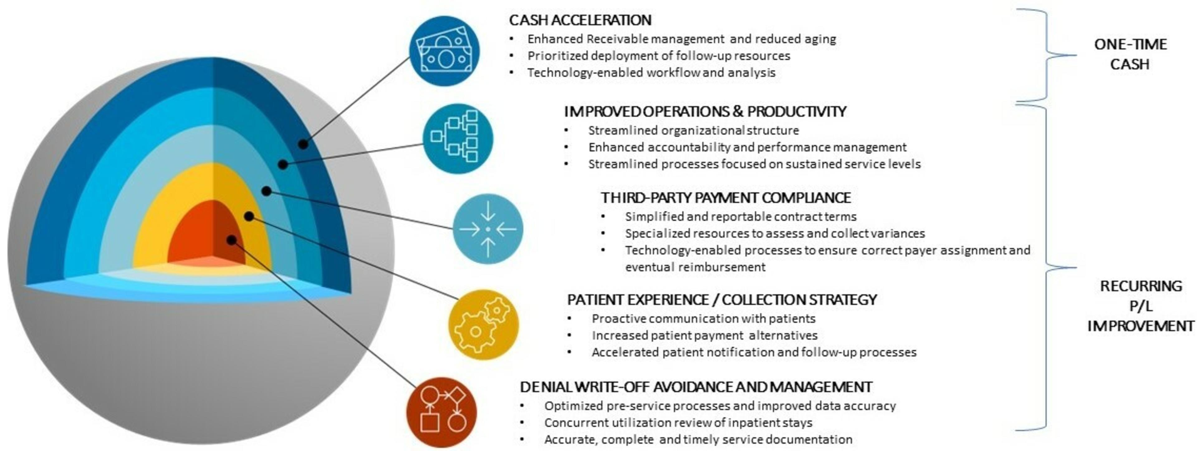 Given the financial challenges health systems are currently facing, proper revenue cycle management is more important than ever. Below are five areas to consider for improving revenue cycle for both one-time cash acceleration and long-term sustainable change.