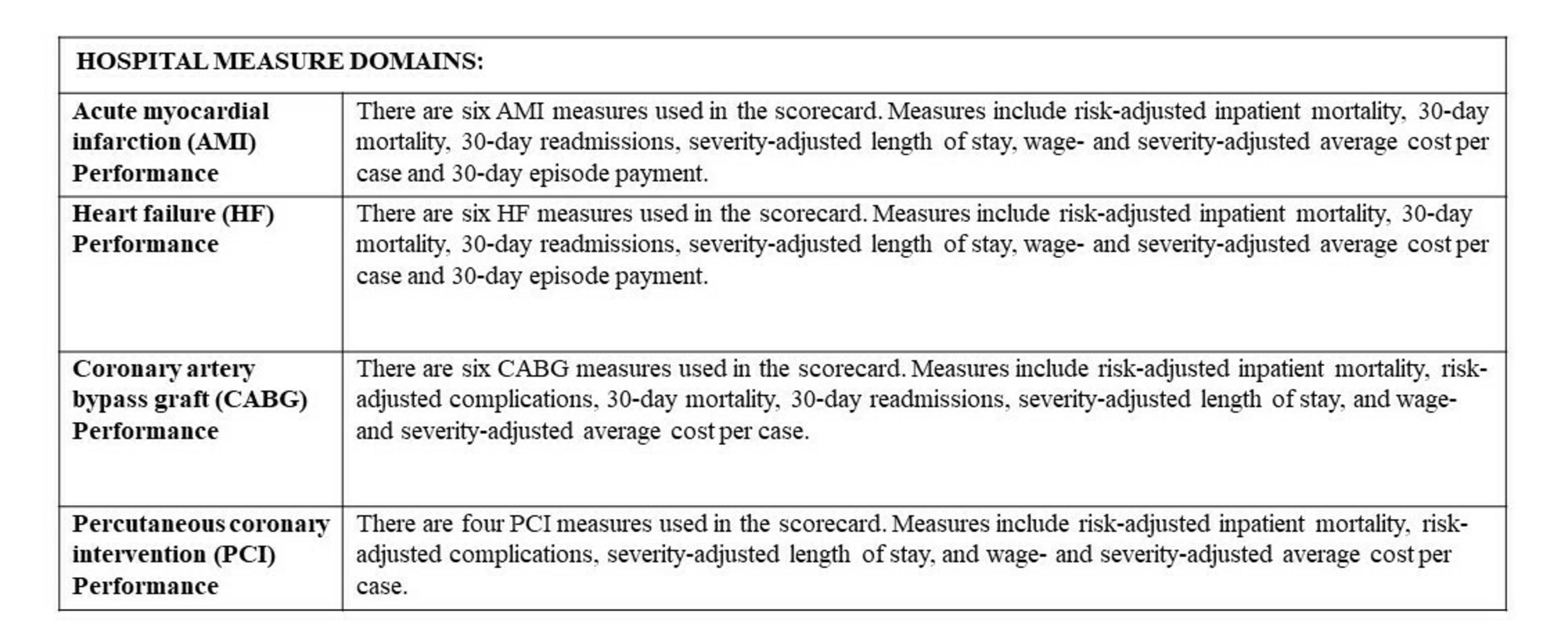 Final rank is determined based on performance for all individual measures. Hospitals are ranked within three separate peer groups: teaching hospitals with cardiovascular residency programs (20 winning facilities), teaching hospitals without cardiovascular residency programs (20 winning facilities) and community hospitals (10 winning facilities).